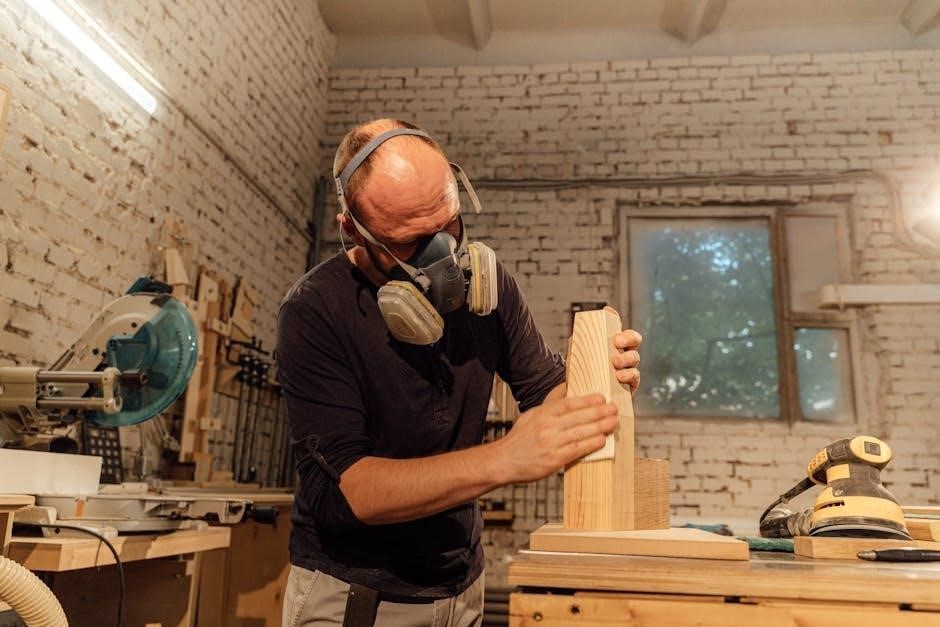 Ensure your workspace is clean, well-lit, and free from clutter or tripping hazards․ Place the miter saw on a stable, flat surface, such as a workbench or saw stand, to prevent vibration or movement during use․ Keep children and pets away from the work area․ Avoid wearing loose clothing or jewelry that could get caught in the blade․ Secure the workpiece firmly before cutting to maintain control and accuracy․ Always unplug the saw when not in use or during blade changes to prevent accidental start-ups․ Proper ventilation is also crucial to reduce dust and fume exposure․